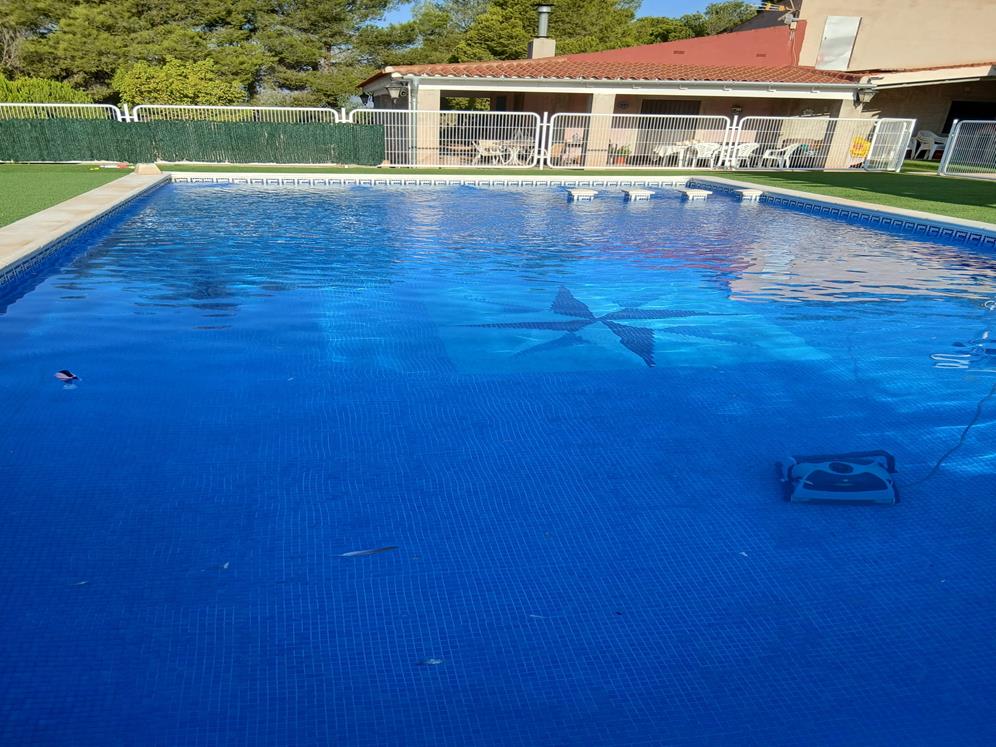 - Piscina privada con jacuzzi, acompañada de una caseta para utensilios de mantenimiento.