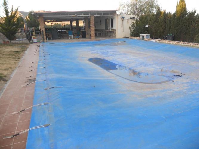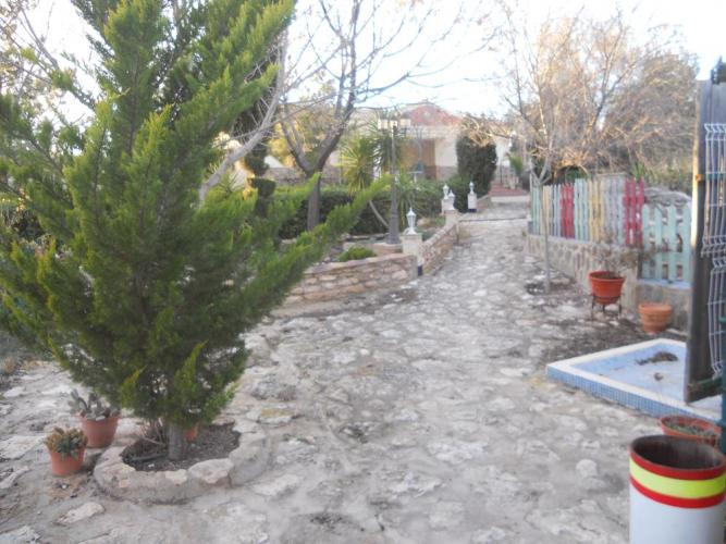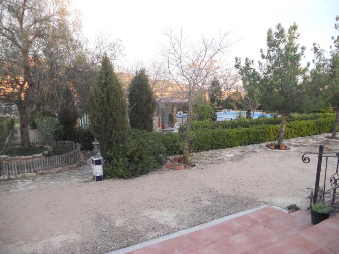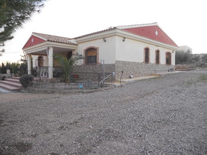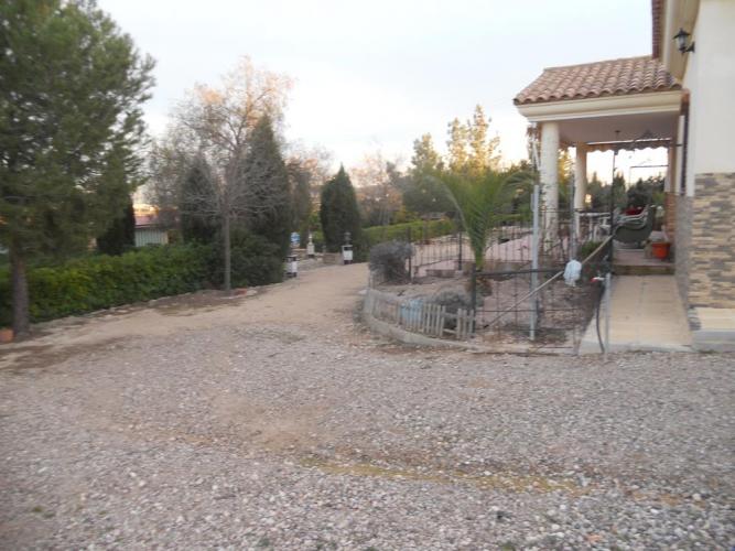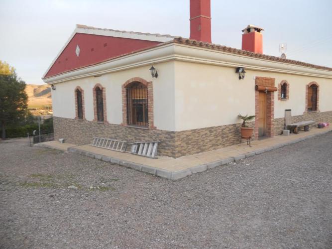 Chalet a 2,5 Km de la poblacion de Jumilla, casa en planta baja, dispone de 4 dormitotios con armarios empotrados, 2 baños completos, amplio salon con chimenea, cocina amueblada con puerta de salida al exterior, en el exterior dipone de garaje de 150 metros, aparcamientos, barbacoa piscina, zonas ajardinadas, 250 olivos y 100 almendros, con instalacion riego por goteo, dispone de luz electrica y agua potable.