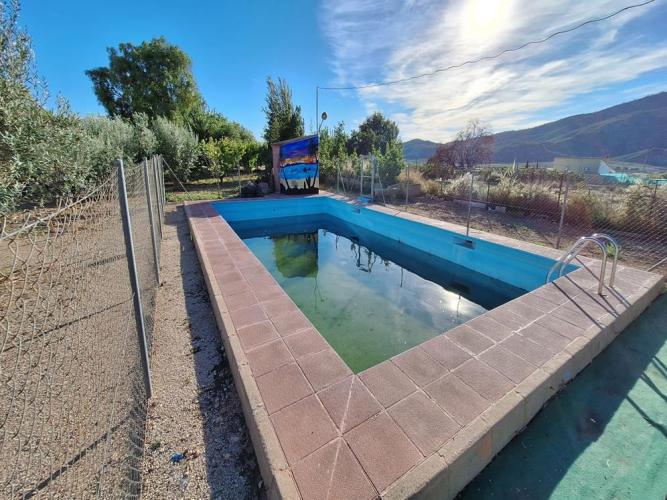 Casa en planta baja, dispone de 4 dormitorios, 1 baño, cocina amueblada, salon con chimenea, cochera de 66 metros , porche de 22 metros, barbacoa, piscina, zonas ajardinadas, agua potable, agua de riego, luz electrica. Parcela de 615 metros cuadrados., con olivos y frutales varios.